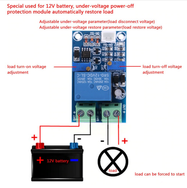 First going to work as battery protection. I’ve set turn off voltage 11.6V and turn on 12.0V. And second one
