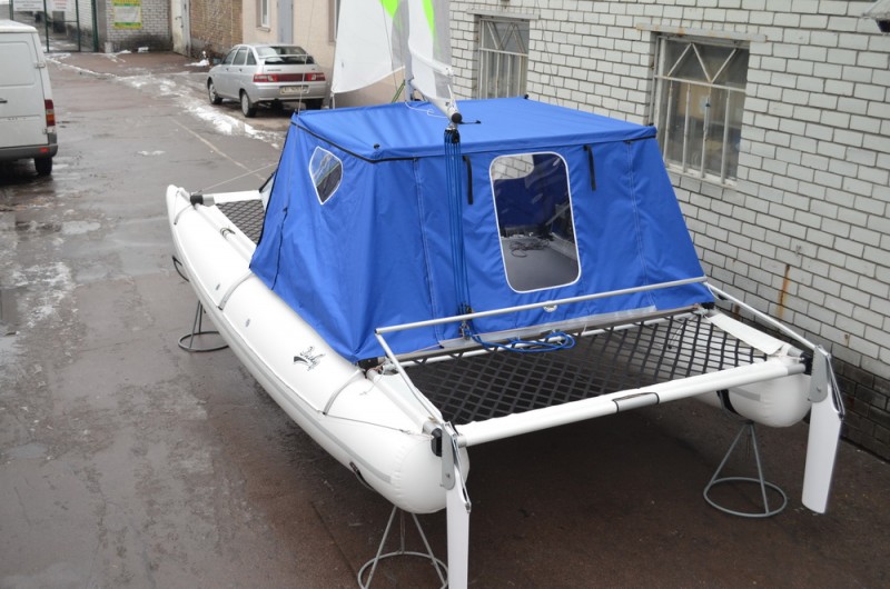 Also outboard engines with a power up to 4.0 hp can be installed on this catamaran via an additional motor bracket attached to the aft beam.