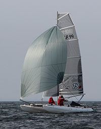 Additionally, an asymmetric spinnaker – gennaker can be installed on a catamaran. It is an effective sail for downwind courses.